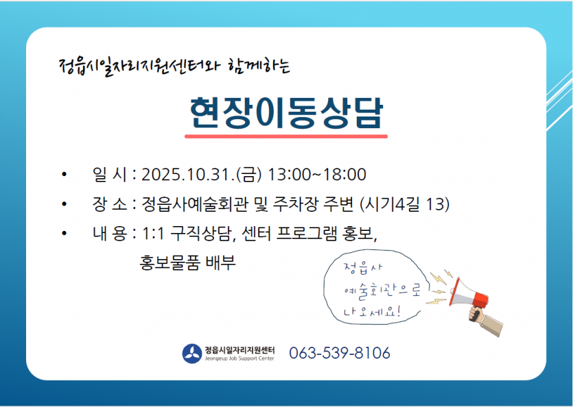 정읍시일자리지원센터에서 현장이동상담을 진행합니다.